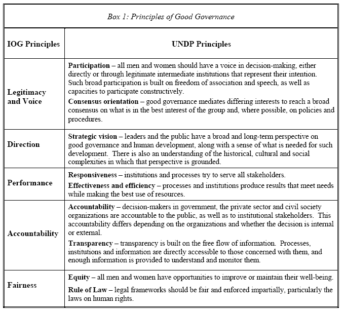 by Graham, J. & Wilson, J. (2004), A Framework Paper for the TANAGA Series. Ottawa, Ontario: Institute on Governance.
